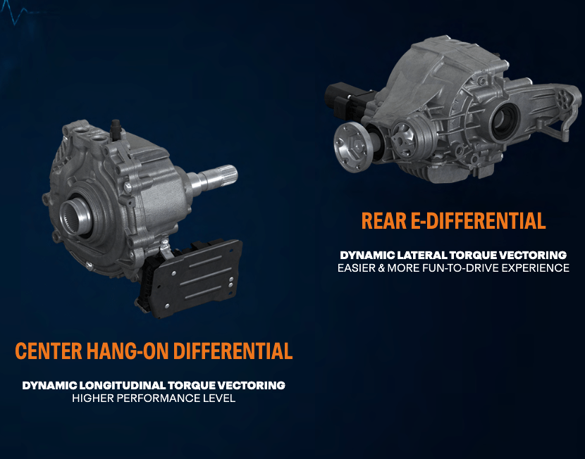 The Urus SE uses a four-wheel-drive (4WD) system that distributes power to all four wheels, improving traction and stability across various driving conditions.It has a hang-on central differential for dynamic longitudinal torque vectoring and an electronic rear differential for dynamic lateral torque vectoring, allowing for precise control of power distribution between the front and rear wheels, improving agility and handling. The electronic rear differential in the Urus SE allows for dynamic lateral torque vectoring, which optimises power distribution to the rear wheels. This enhances cornering performance and stability by adjusting the torque sent to each wheel based on driving conditions and inputs.